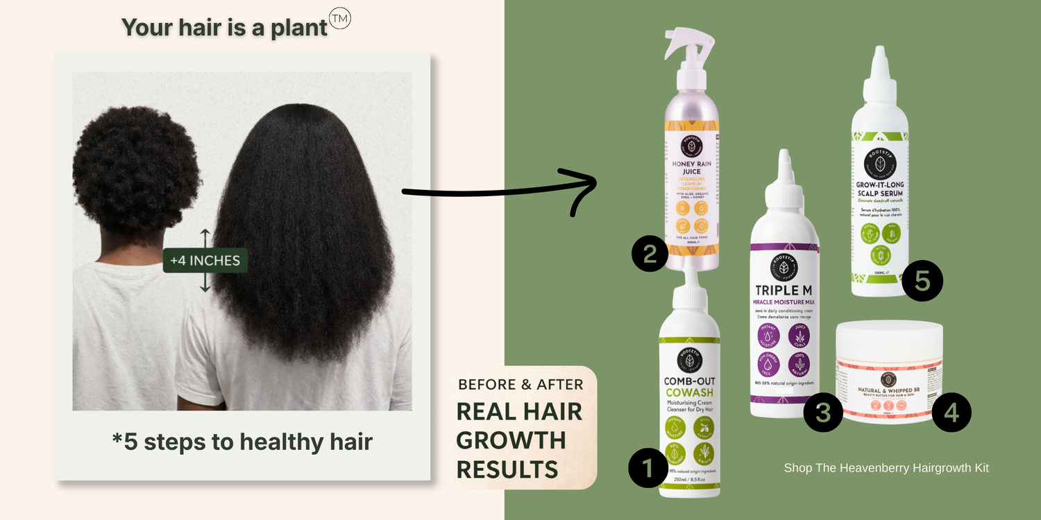 Used in my daughter’s very thick 4C hair. Sprayed regularly while her hair was in cornrows, when I took them out for wash day the growth was ALOT!! I’m actually struggling with managing her hair while it’s out at the moment! Will definitely invest in other products from this range for her hair, because it seem to agree with her! Thank you Root2tip!