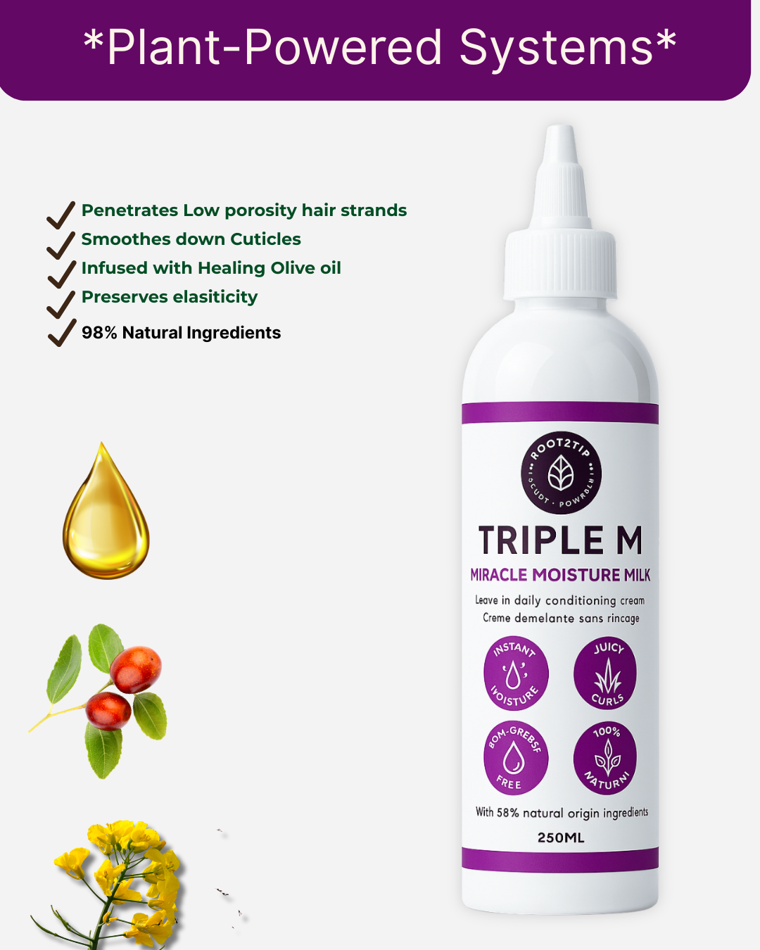 Struggling with dry, brittle hair that just won’t absorb moisture? TRIPLE M™ was made for you. This rich yet lightweight leave-in conditioning crème penetrates resistant strands and hydrates without buildup—a true game-changer for low porosity, transitioner, and natural hair types.